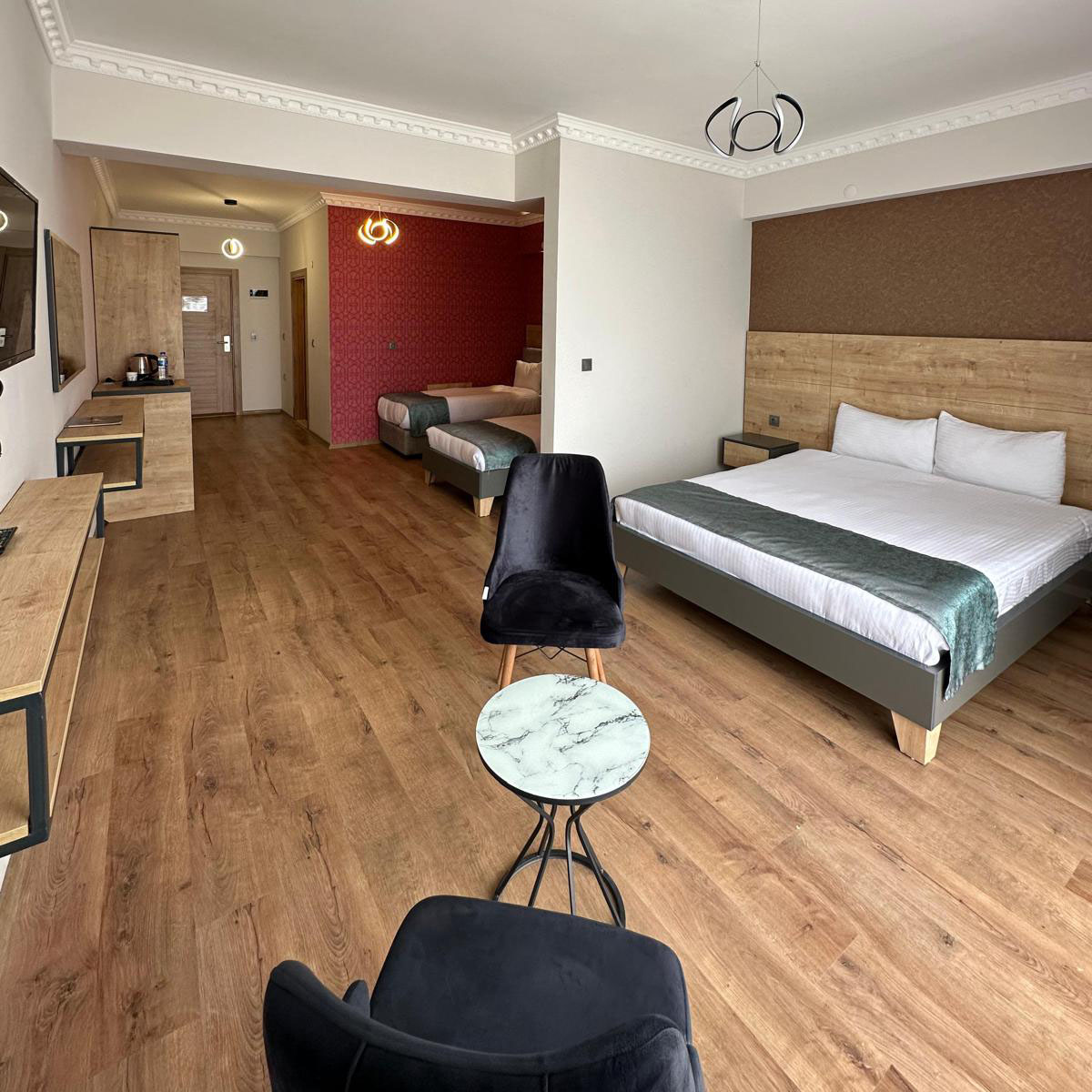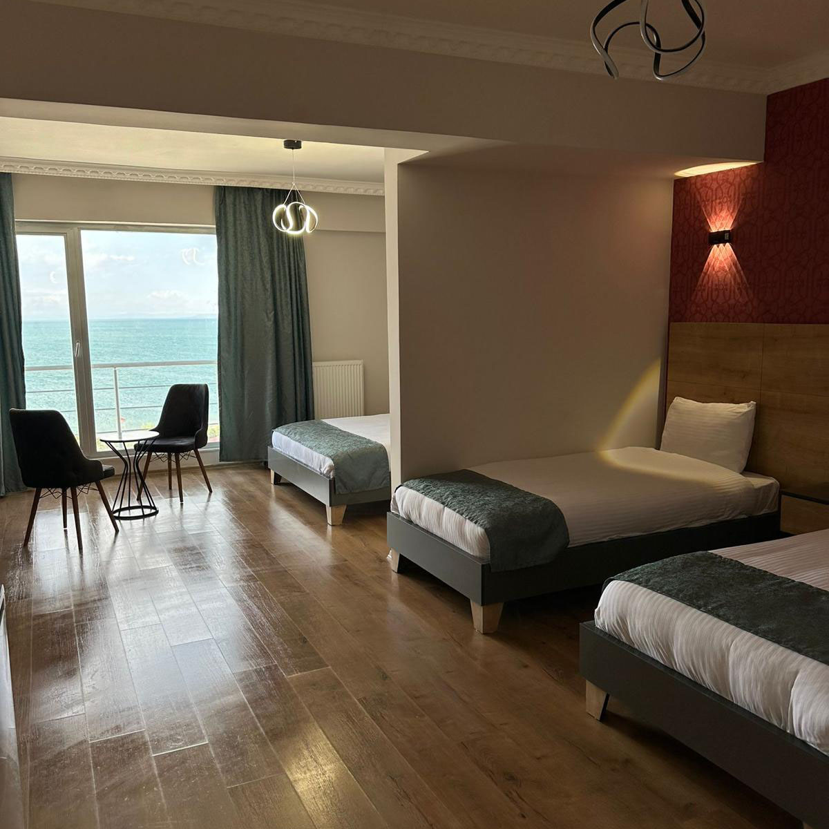Van Gölü ve Akdamar Adası manzaralı Deluxe Aile Odası, 3 kişilik aileler için rahat ve konforlu bir konaklama alanı sunar. Modern tasarımı ve ferah yapısıyla huzurlu bir tatil deneyimi sağlar.
